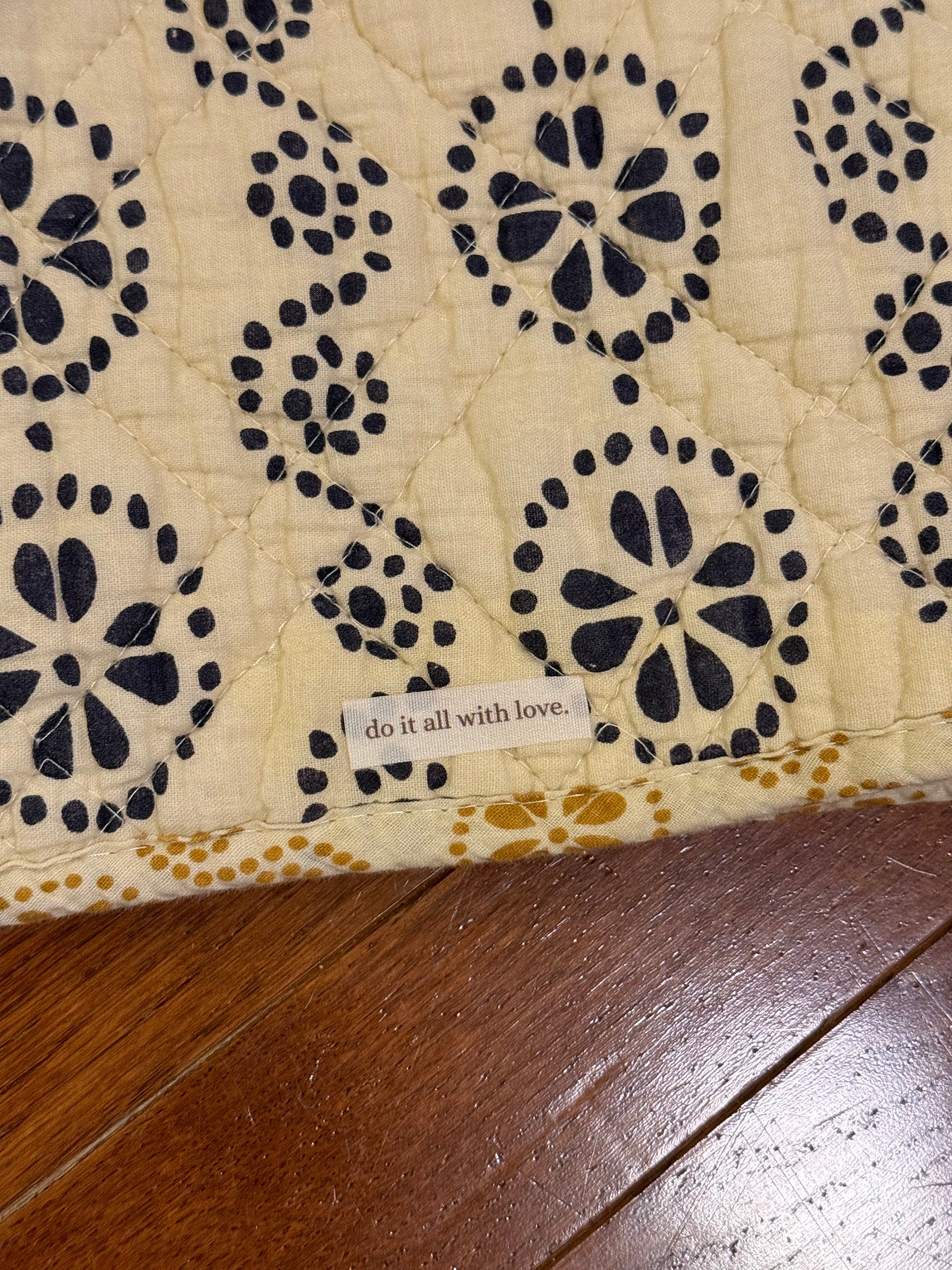 due to the handmade nature of this piece and the use of reclaimed textiles, small vintage quirks may be present (gentle fading, mended areas, or minor imperfections). any quirks are cosmetic only and do not affect function or durability - they’re part of what makes each piece one of a kind.