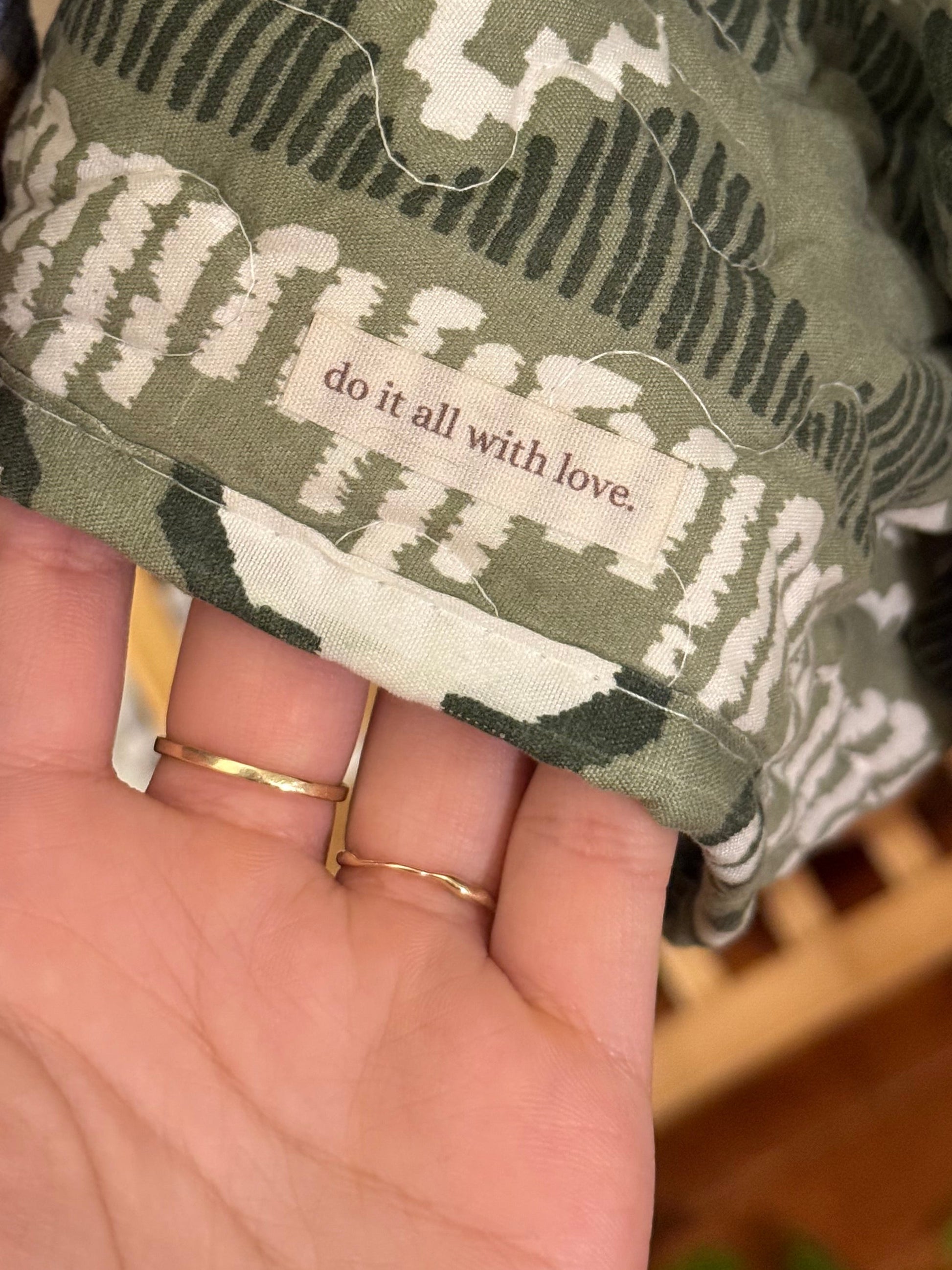 due to the handmade nature of this piece and the use of reclaimed textiles, small vintage quirks may be present (gentle fading, mended areas, or minor imperfections). any quirks are cosmetic only and do not affect function or durability - they’re part of what makes each piece one of a kind.